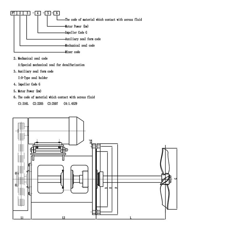 2. 적절한 임펠러 설치 높이를 선택하고 장비를 결합하여 대략적인 교반기 샤프트 길이를 추정합니다.